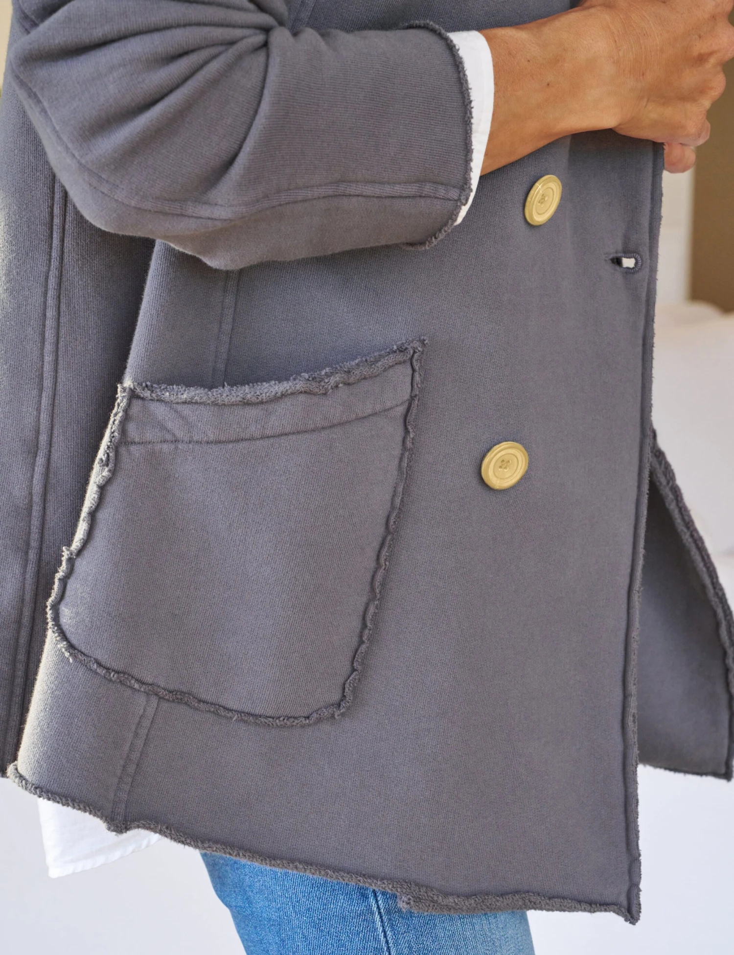 Meet Belfast, our English-peacoat-meets-California-cool jacket designed to toss over a tee and go! Luxurious horn buttons, scrunchable sleeves, a stretchy fit, and statement collar add a pop of California cool to this year-round piece.