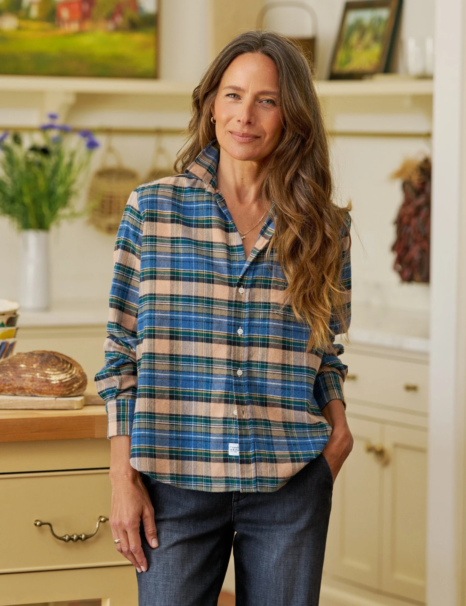 EILEEN Brown And Green With Blue Plaid, Italian Flannel