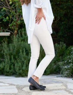 Kinsale is our contemporary take on the classic sailor pant. A comfortable, slightly stretchy, high-rise waistband (with no front pockets) creates a smooth silhouette while Kinsale’s cropped ankle and raw edge hem add a contemporary edge.